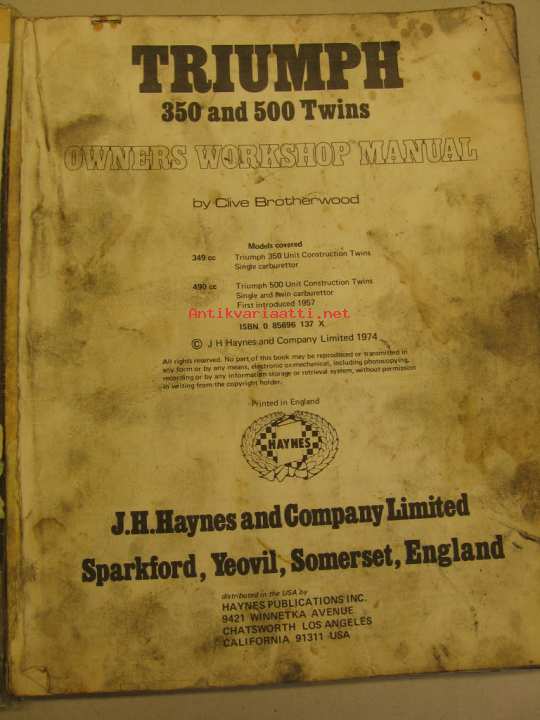 Tiumph 350 and 500 Twins owner´s workshop manual
