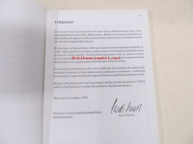 | Saatavilla | 1 kpl | | Julkaisuvuosi | 1998 | | Sivuja | 137 | | Painos | 1. | | Kunto | K3 | | Sidonta/painoasu | Nidottu (pehmeäk.) | | ISBN | 951-25-0996-2 | | Kielet | Suomi |