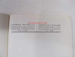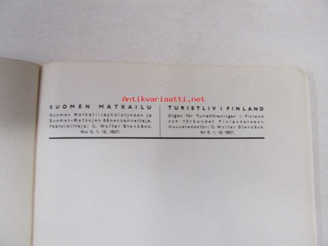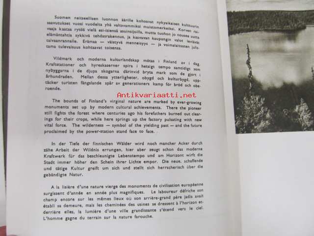 | Saatavilla | 1 kpl | | Julkaisuvuosi | 1937 | | Sivuja | 63 | | Painos | 1. | | Kunto | K2 | | Sidonta/painoasu | Nidottu (pehmeäk.) | | Kielet | Englanti, Ruotsi, Suomi, Saksa, , Ranska |