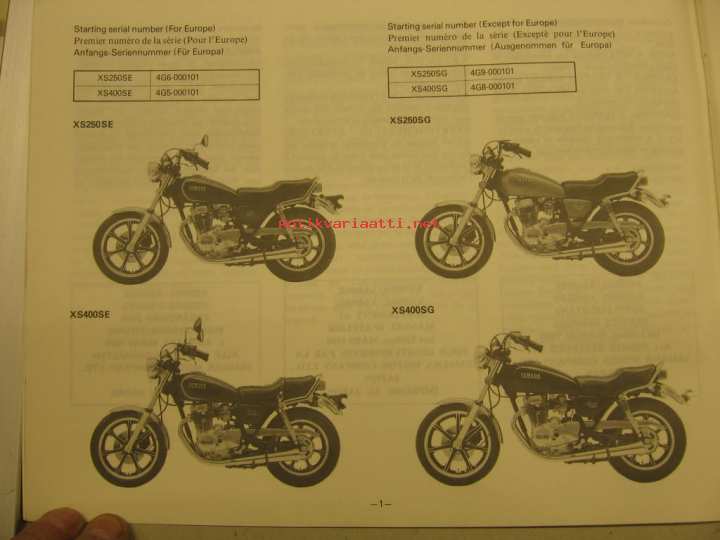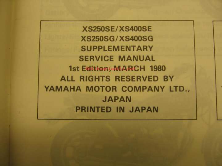 Yamaha XS250SE XS400SE XS250SG XS400SG supplementary service manual