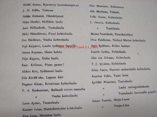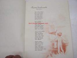 | Saatavilla | 1 kpl | | Julkaisuvuosi | 1945 | | Sivuja | 70 | | Painos | 1. | | Kunto | K2 | | Sidonta/painoasu | Sidottu (kovak.) | | Kielet | Suomi |