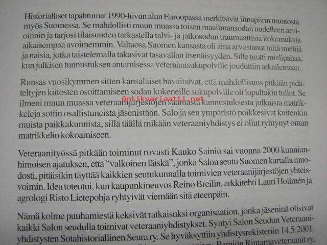 Voitto Laine, Keskitalo Tuula, Sinivaara Aarne, Venho Pasi, Helin Ossi, Hirvonen Tuomo, Salon seudun Veteraaniyhdistysten Sotahistoriallinen Seura, 200318 x 25 cm kirjat.