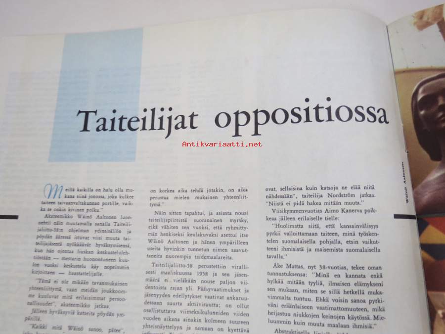 Me Naiset 1959 nr 2, Japanilainen perhe puhuu suomea tri Sakai, Uusi pieni ihminen "vauvanumero", Taiteilijat oppositiossa Wäinö Aaltonen - Veikko Marttinen -...
