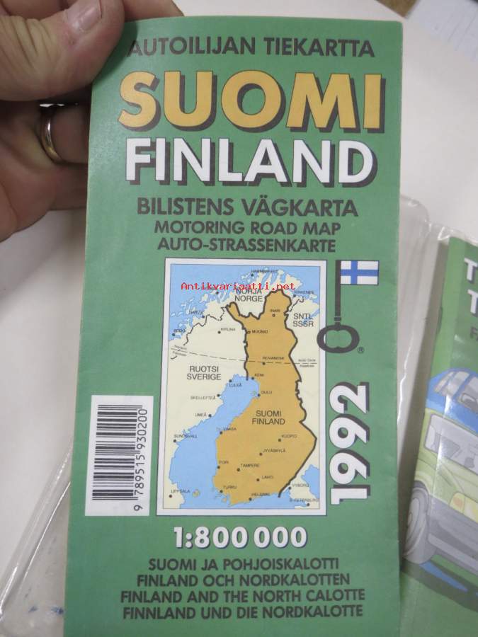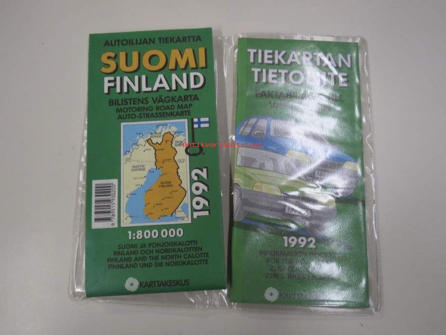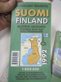Autoilijan tiekartta 1992 Suomi ja Pohjoiskalotti - Finland och Nordkalotten - Finland and the North Calotte - Finland und Die Nordkalotte -kartta, sisältää liitteen