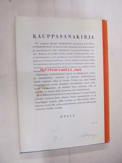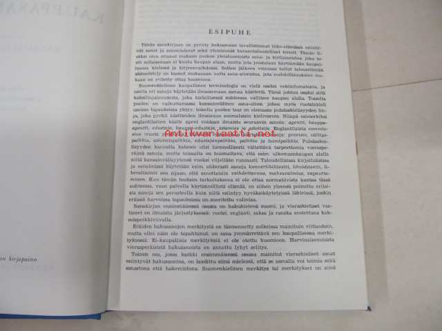 | Saatavilla | 1 kpl | | Julkaisuvuosi | 1957 | | Sivuja | 397 | | Painos | 1. | | Kunto | K3 | | Sidonta/painoasu | Sidottu (kansipaperit) | | Kielet | Suomi, Ruotsi, Englanti, Saksa, Ranska |