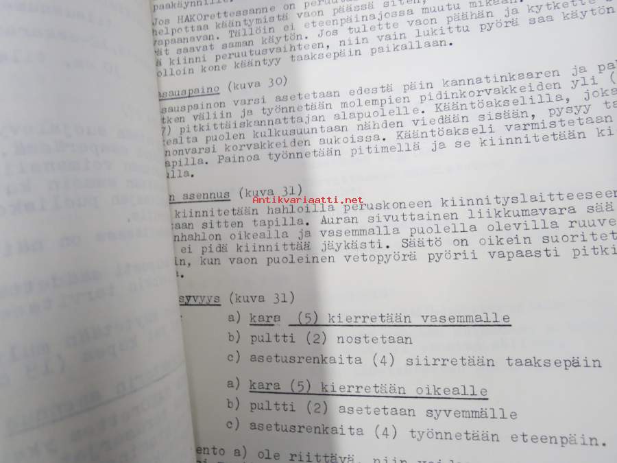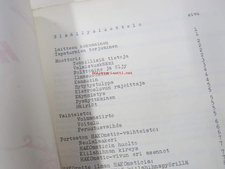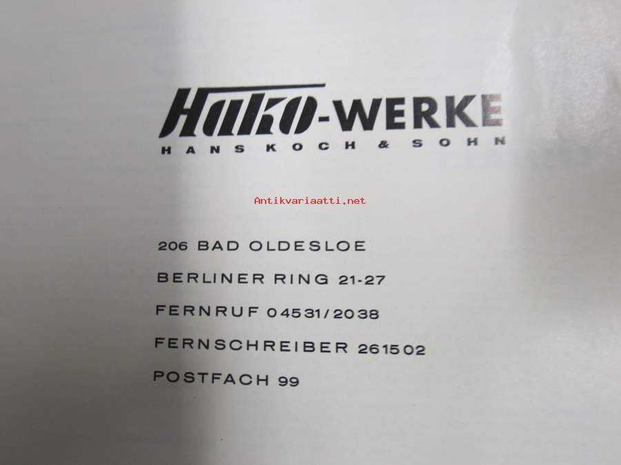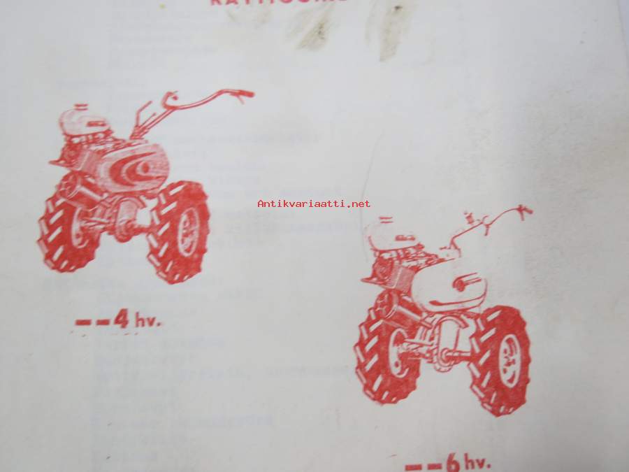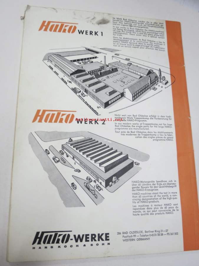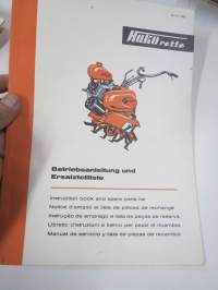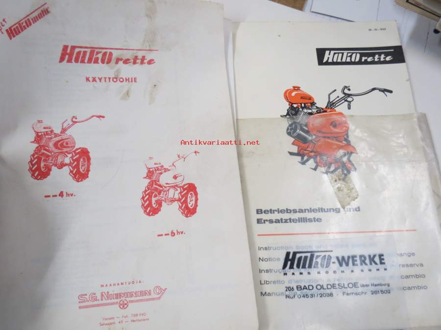 Hako Hakorette - super Hakomatic 4 & 6 hv. puutarhatraktori, alkuperäinset saksankielinen Betriebsanleitung & Ersatzrtteilliste sekä suomenkielinen käyttöohjekirja