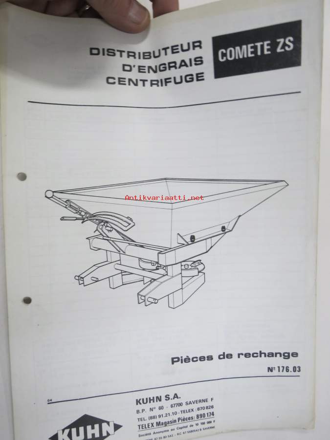 Kuhn Comete ZS Centrifuge / Distriputeur -levitin, varaosaluettelo