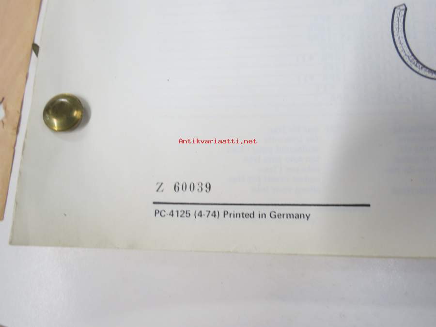 | Saatavilla | 1 kpl | | Julkaisuvuosi | 1974 | | Kunto | K2 | | Kannet puuttuvat | | Sidonta/painoasu | Nidottu (pehmeäk.) | | Kielet | Ranska, Saksa, Englanti, Ruotsi |
