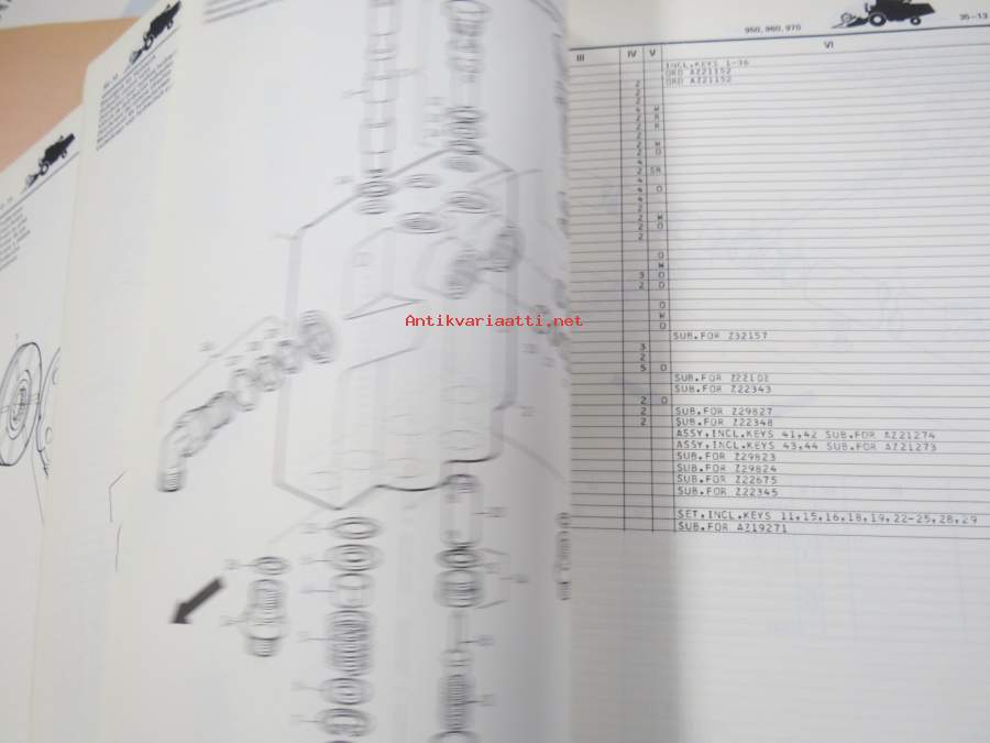 John Deere 950, 960, 970 leikkuupuimuri -varaosaluettelo