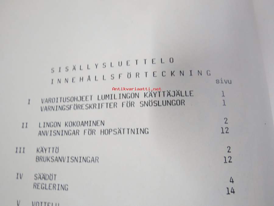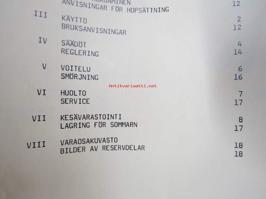 | Saatavilla | 1 kpl | | Sivuja | 23 | | Kunto | K2 | | Sidonta/painoasu | Nidottu (pehmeäk.) | | Kielet | Suomi |