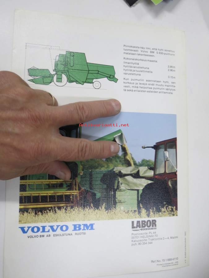 Volvo BM S 830 (leikkuupuimurin) hytti -myyntiesite
