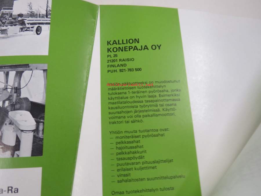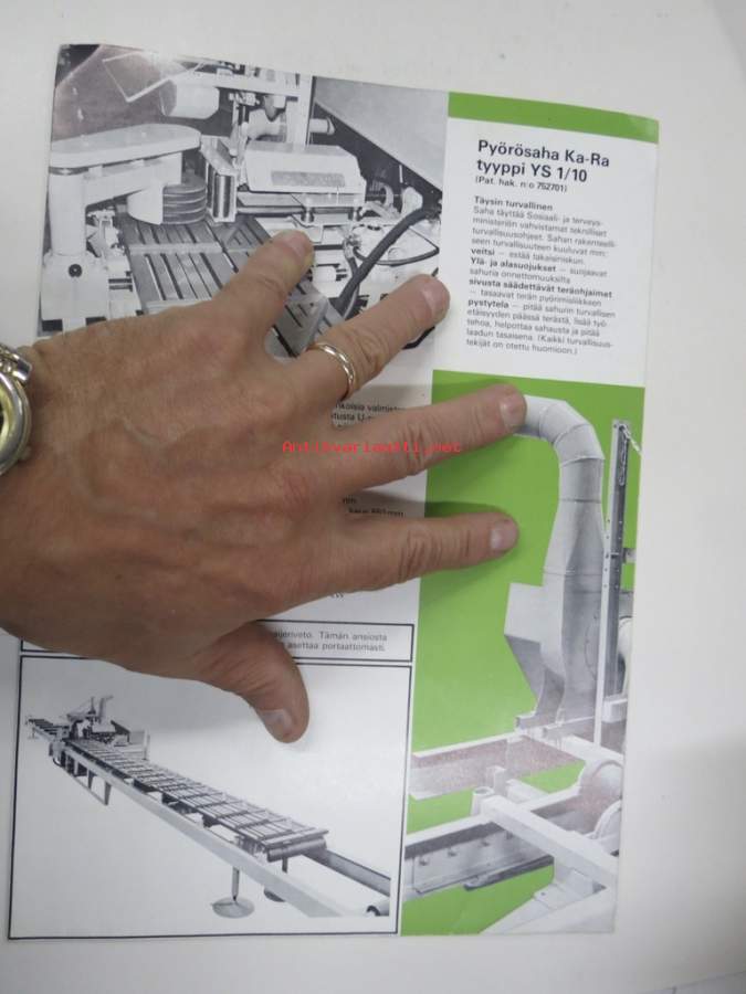 Kalion Konepaja / Kara pyörösaha YS-1/10 tarjouskansio, joka samalla esite kuvineen -myyntiesite