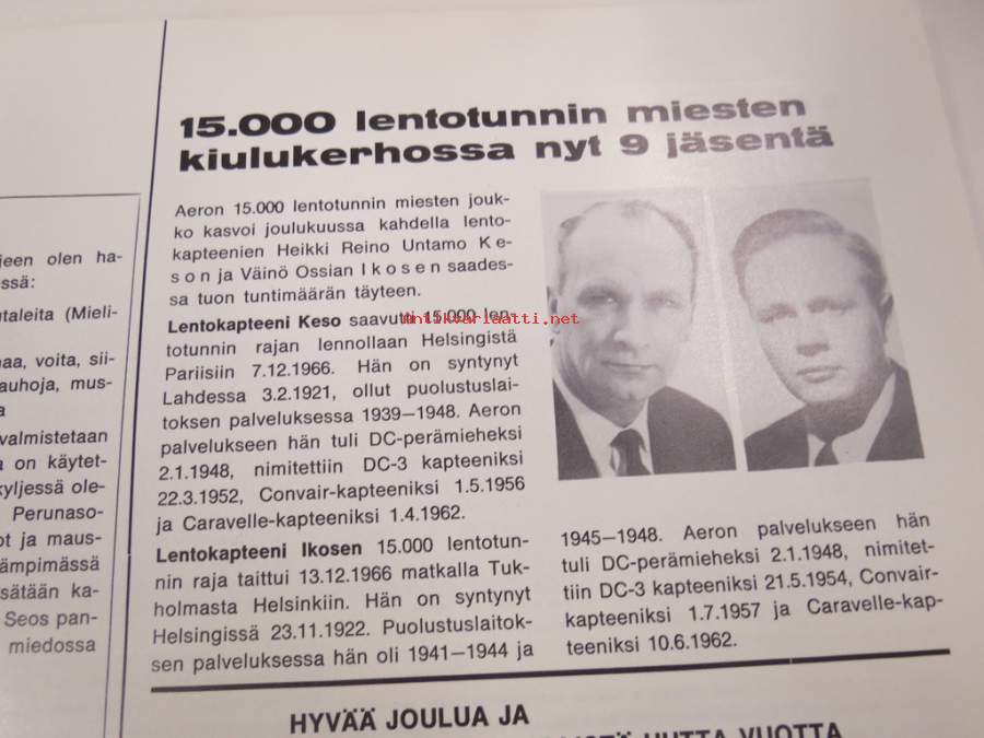 Äänivalli joulukuu 1966 (16.) Aero Oy-julkaisu, mm. DC-8 asiaa