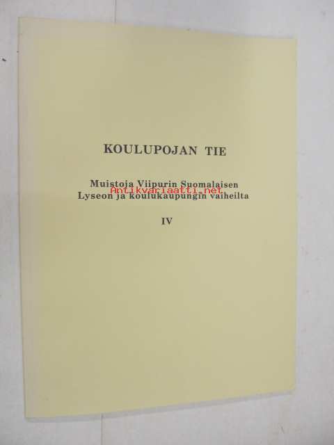 Koulupojan tie : Muistoja Viipurin Suomalaisen Lyseon ja koulukaupungin vaiheilta IV