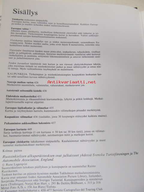 Euroopan tiekirja. Automatkailijan opas. Kartat ja reittiselostukset