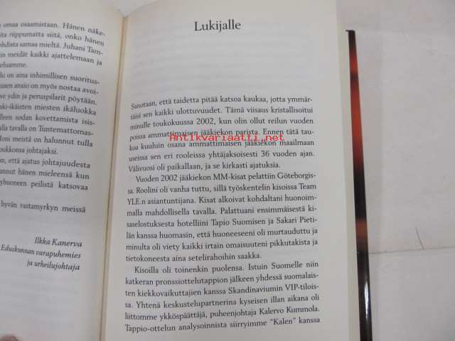| Saatavilla | 1 kpl | | Julkaisuvuosi | 2003 | | Sivuja | 207 | | Painos | 1. | | Kunto | K3 | | Sidonta/painoasu | Sidottu (kansipaperit) | | ISBN | 951-20-6450-2 | | Kielet | Suomi |