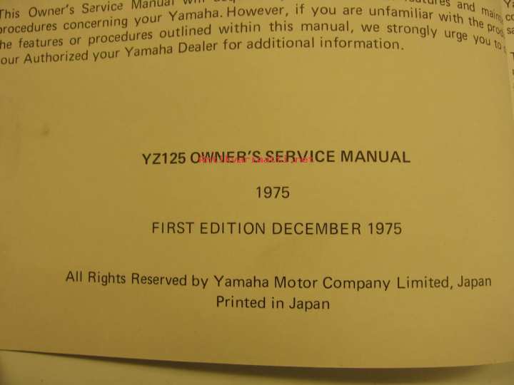 Yamaha YZ125 owner´s service manual käyttö- ja huolto-ohjekirja