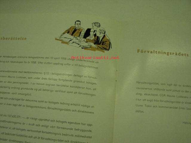 Finska Socker Ab (Suomen Sokeri Oy) årsberättelse 1958 -vuosikertomus