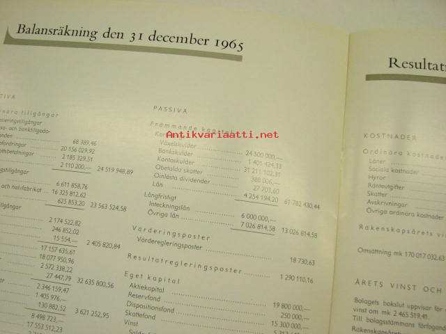 Finska Socker Ab (Suomen Sokeri Oy) årsberättelse 1965 -vuosikertomus