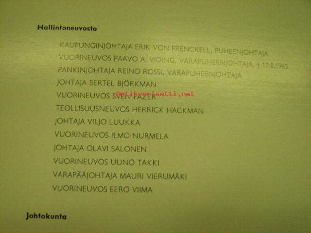 | Saatavilla | 1 kpl | | Julkaisuvuosi | 1966 | | Sivuja | 16 | | Kunto | K3 | | Sidonta/painoasu | Nidottu (pehmeäk.) | | Kielet | Suomi |