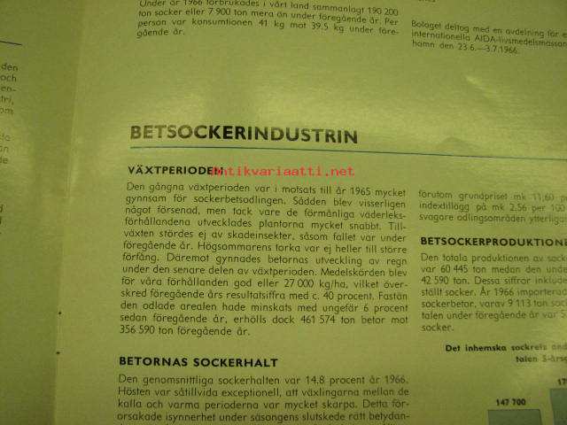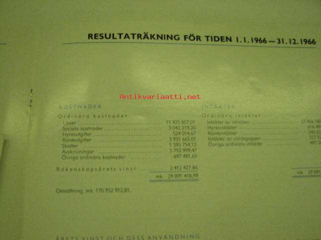 Finska Socker Ab (Suomen Sokeri Oy) årsberättelse 1966 -vuosikertomus