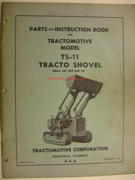 Tractomotive TS-11 Tracto Shovel Parts and Instruction Book varaosaluettelo ja käyttöohjekirja