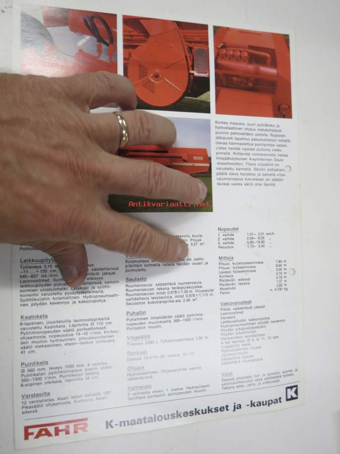 Fahr M 900 Tehopuimuri leikkuupuimuri -myyntiesite / sales brochure