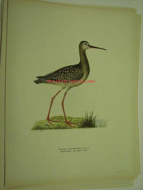 Totanus erythropus, viklo, naaras svartsnappa -painokuva Svenska fåglar