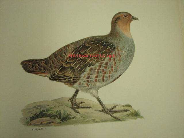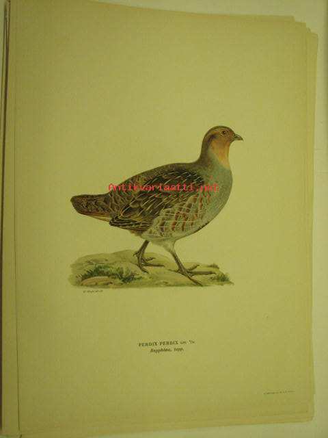 Perdix perdix, peltopyy, uros, Grey Partridge, rapphöna -painokuva Svenska fåglar