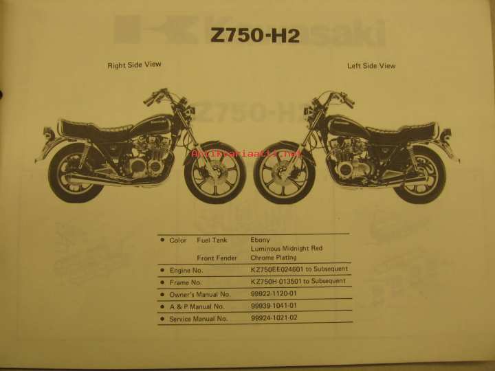 Kawasaki Z750-H Parts Catalog varaosaluettelo