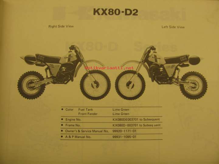 Kawasaki KX80-D parts catalog varaosaluettelo