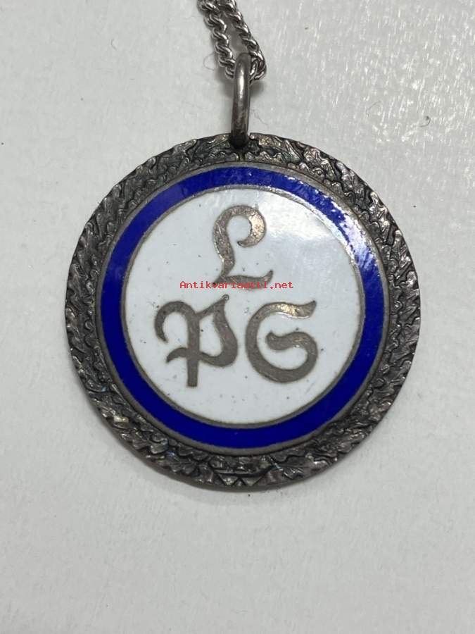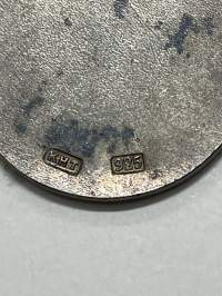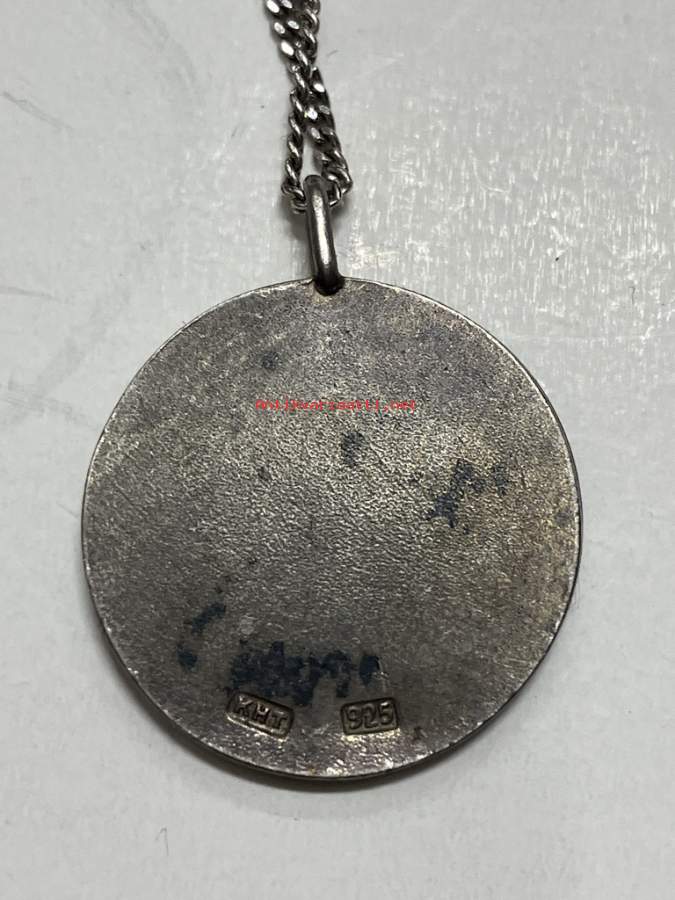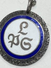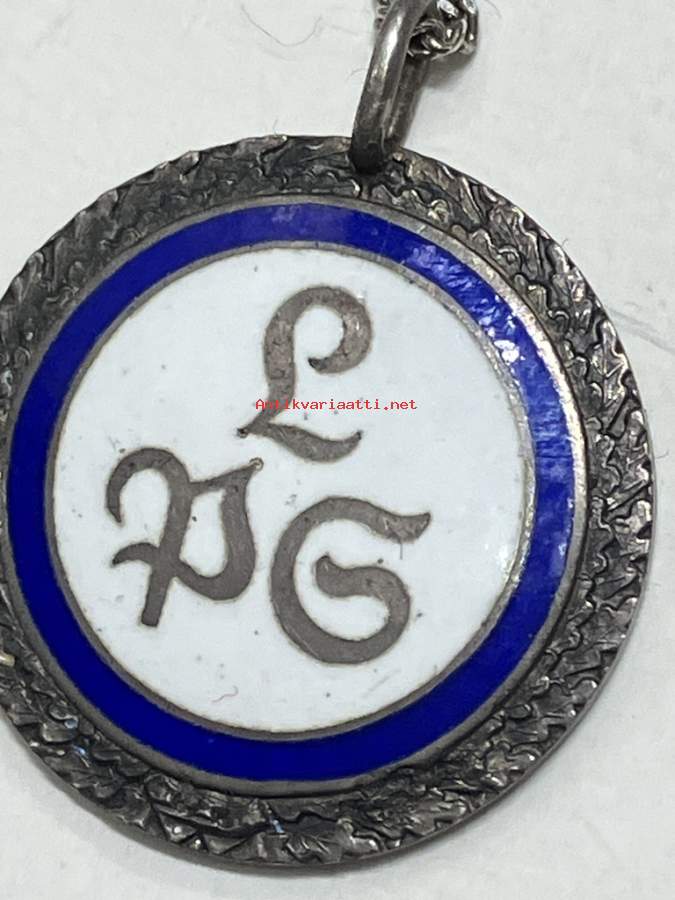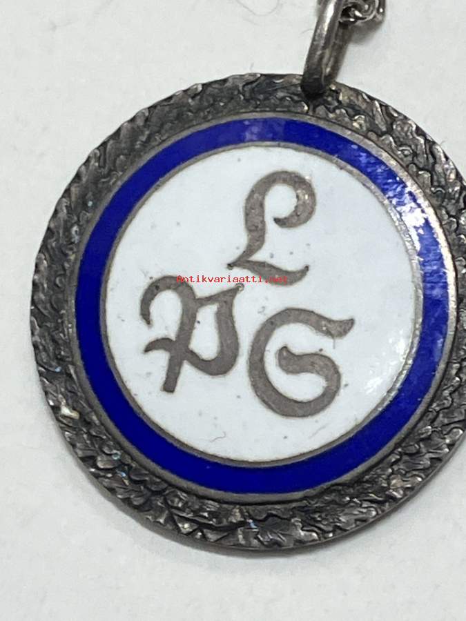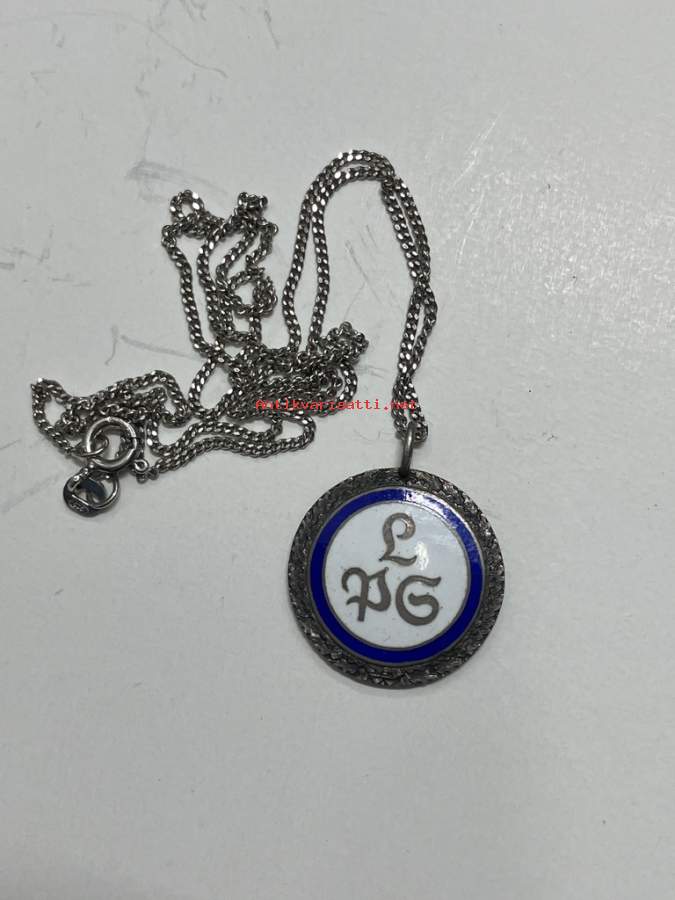 Lahden Pursiseura -riipus emaloitu, runko 925 leimattua hopeaa, myös ketju leimattu 925