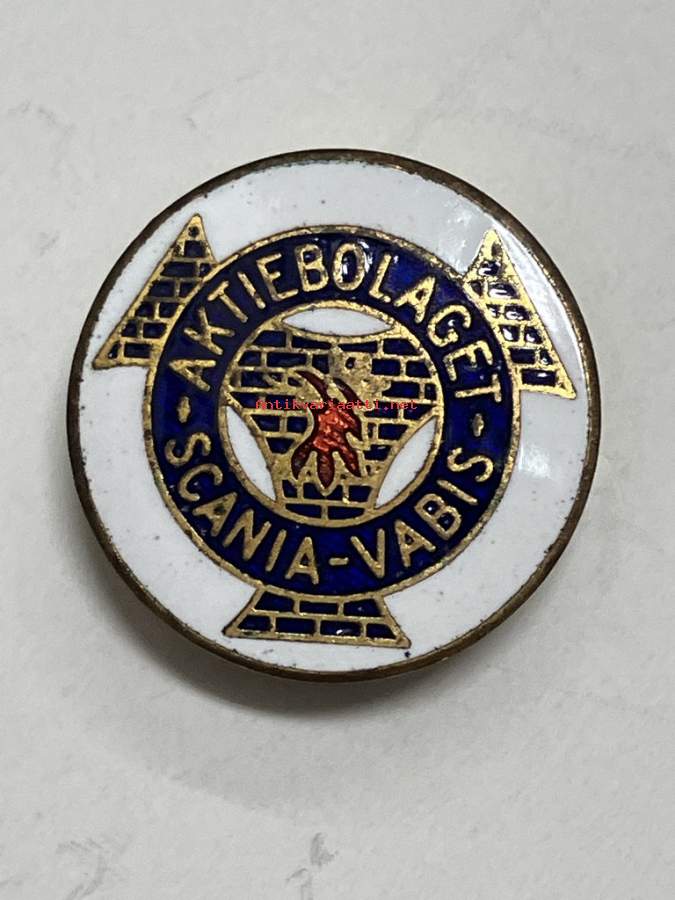 Scania -Vabis -napinläpeen tarkoitettu rintamerkki, emalia, arviolta 1950-luvun loppupuolelta