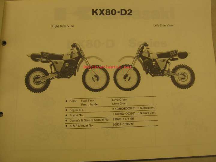 Kawasaki KX80-D ´82 parts catalogue varaosaluettelo