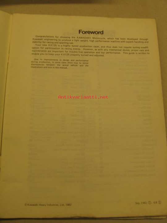 Kawasaki Heavy Industries Ltd, 1983Alkuperäinen käyttö- ja huolto-ohjekirja.