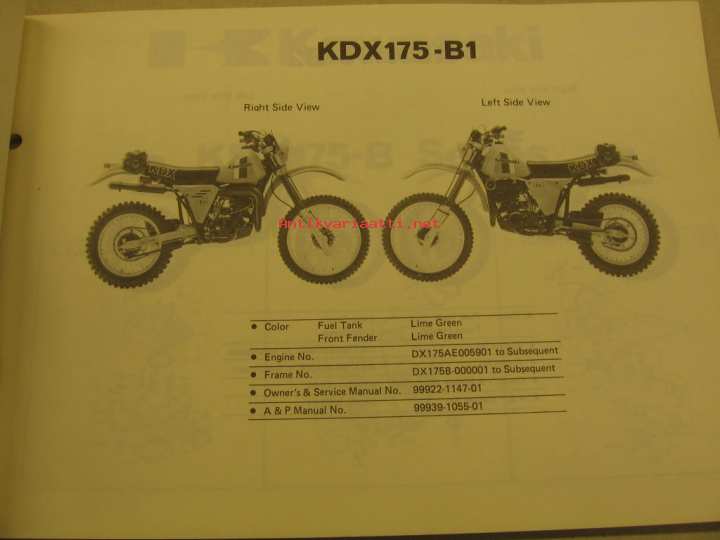 Kawasaki KDX175-B ´81 parts catalogue varaosaluettelo