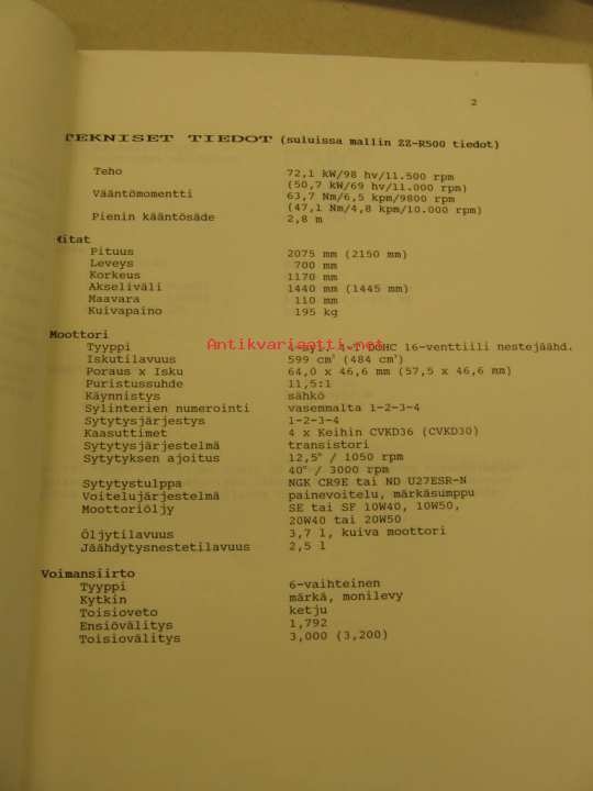 Kawasaki ZZ-R500 käyttöohjekirja