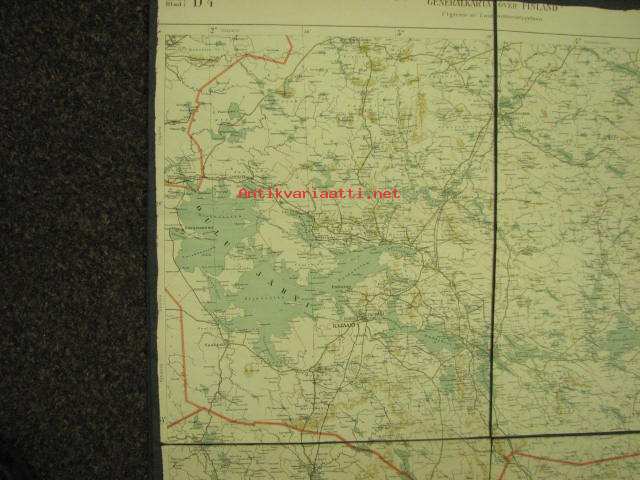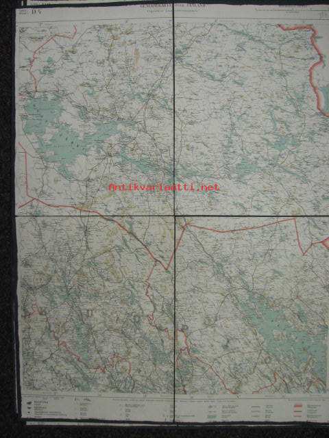 Lehti D4 Generalkarta öfver Finland, 1940, Kajaani, Iisalmi, Nurmes kankaalle pohjustettu -kartta