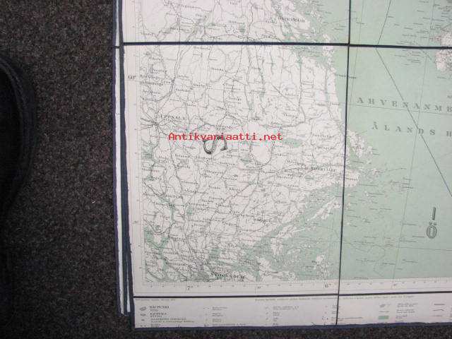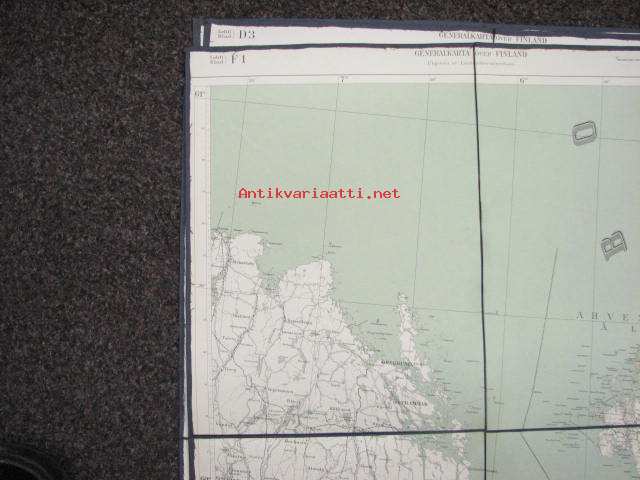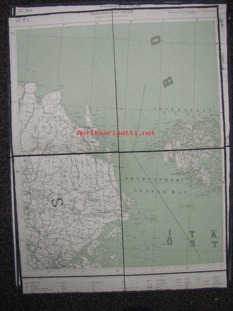 Lehti D4 Generalkarta öfver Finland, 1934, Ahvenanmaa, kankaalle pohjustettu -kartta