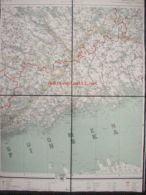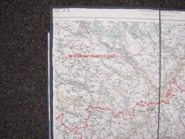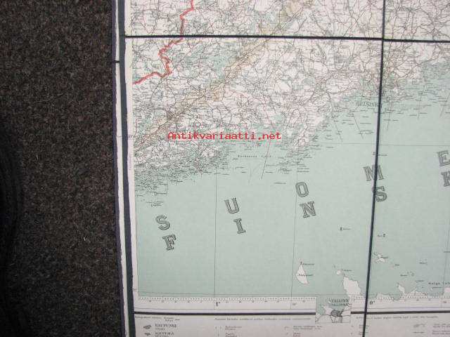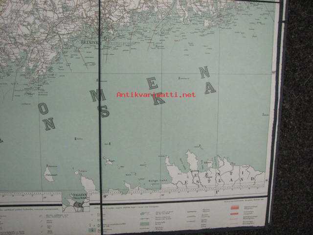 Lehti F3 Generalkarta öfver Finland, Hämeenlinna, Heinola, Lahti, Helsinki, Porvoo, Loviisa, Tallinna, 1940, kankaalle pohjustettu -kartta