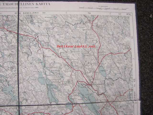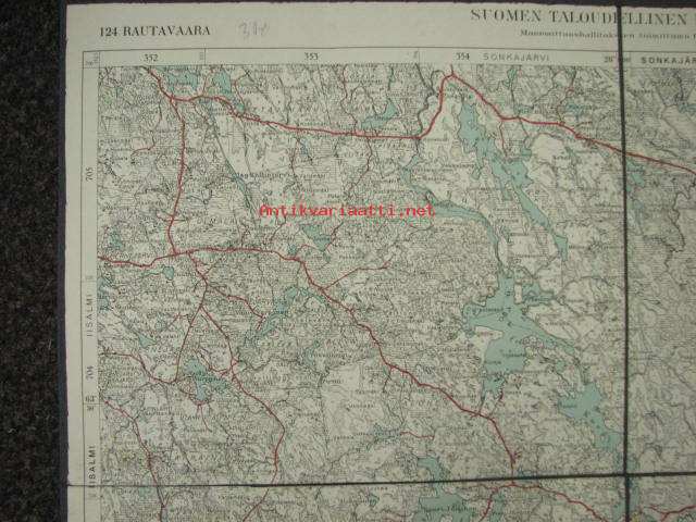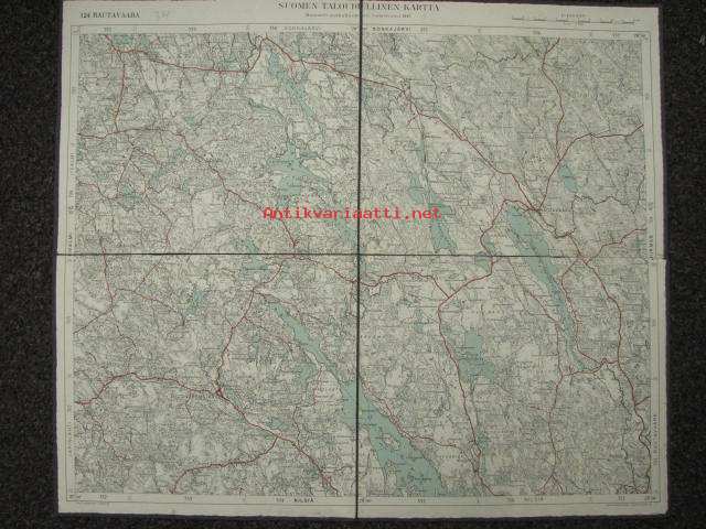 Rautavaara 124 Suomen taloudellinen kartta 1941, kankaalle pohjustettu -kartta