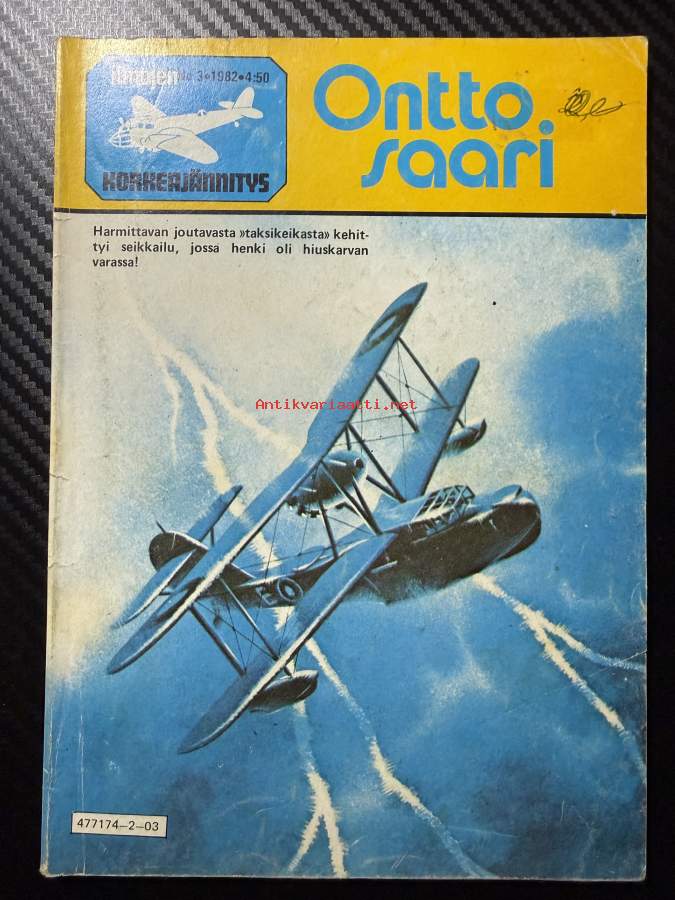 | Saatavilla | 1 kpl | | Julkaisuvuosi | 1982 | | Sivuja | 68 | | Kunto | K3 | | Sidonta/painoasu | Lehti | | ISBN | 477174-2-03 | | Kielet | Suomi |