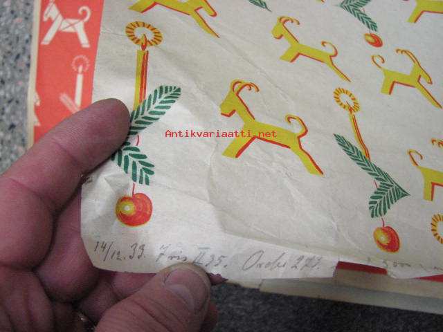 Joululahjojen käärepaperiarkki 1930-luvulta