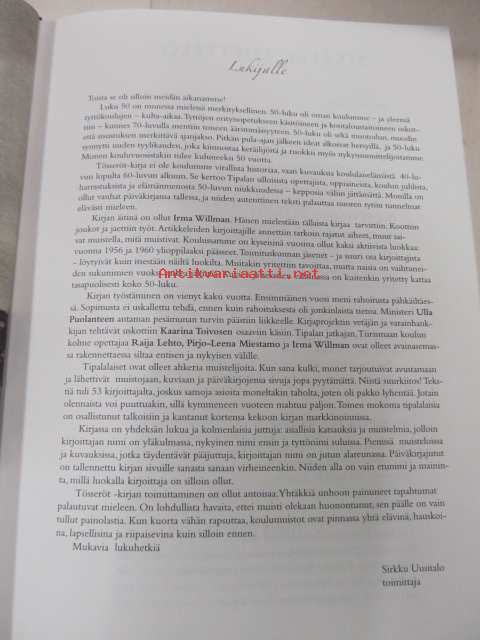 | Saatavilla | 1 kpl | | Julkaisuvuosi | 2005 | | Sivuja | 253 | | Painos | 1. | | Kunto | K3 | | Sidonta/painoasu | Kuvitettu kovakantinen | | ISBN | 952-91-9271-1 | | Kielet | Suomi |