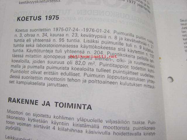 NIVA SK 5 ajopuimuri Vakola koetusselostus nr 962 1978