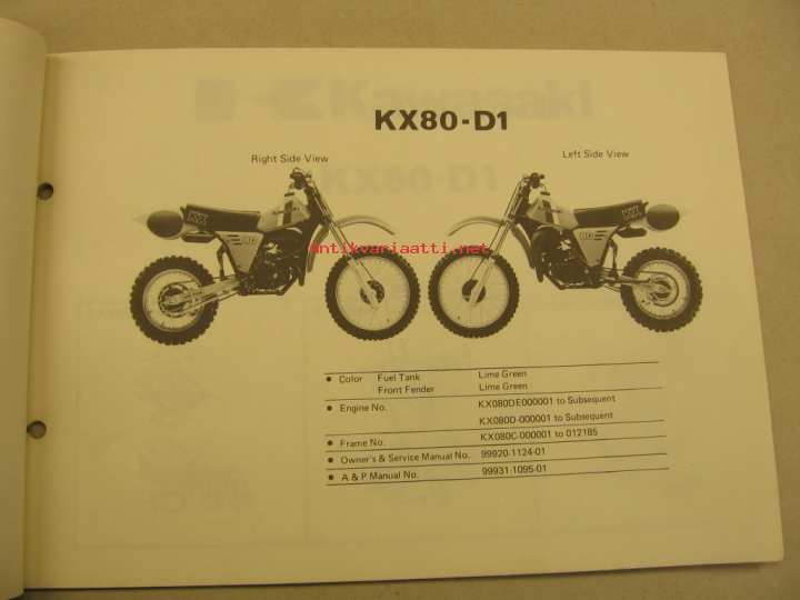 Kawasaki KX80-D ´81 parts catalog varaosaluettelo