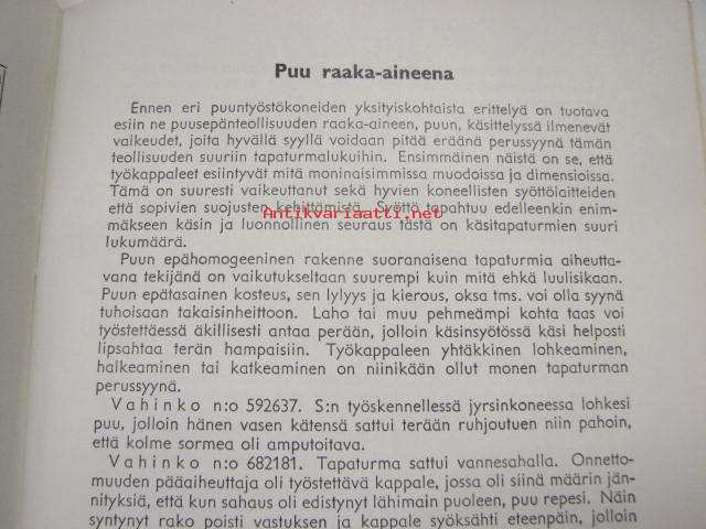 Puuntyöstökoneet - Vaarat ja varokeinot - Vakuutusyhtiö Teollisuus-Tapaturma -ohje- ja varoituskirja 1957