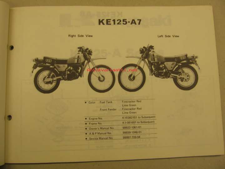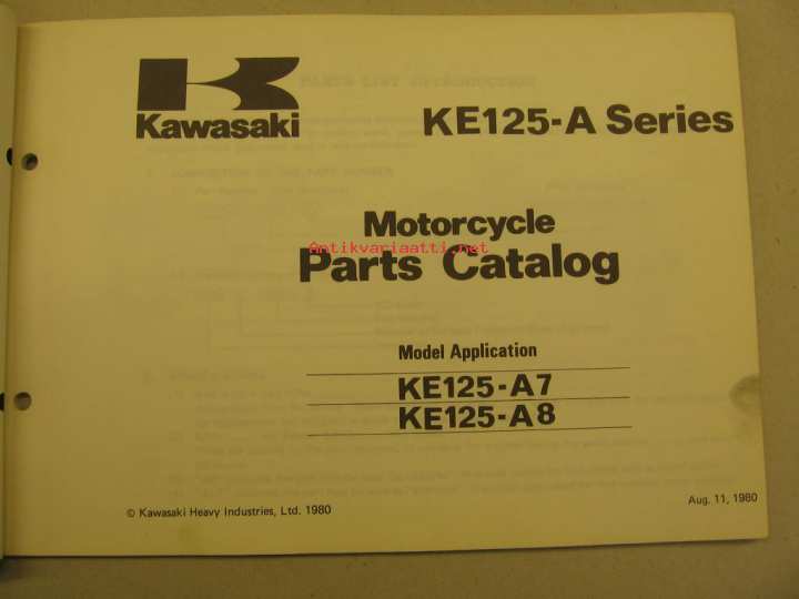 Kawasaki KE125-A ´81 parts catalog varaosaluettelo