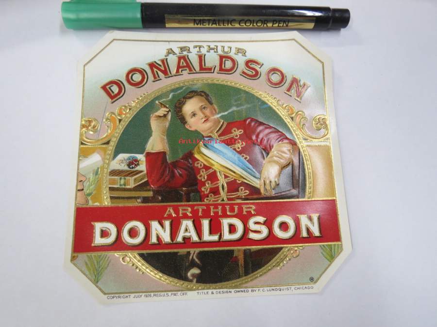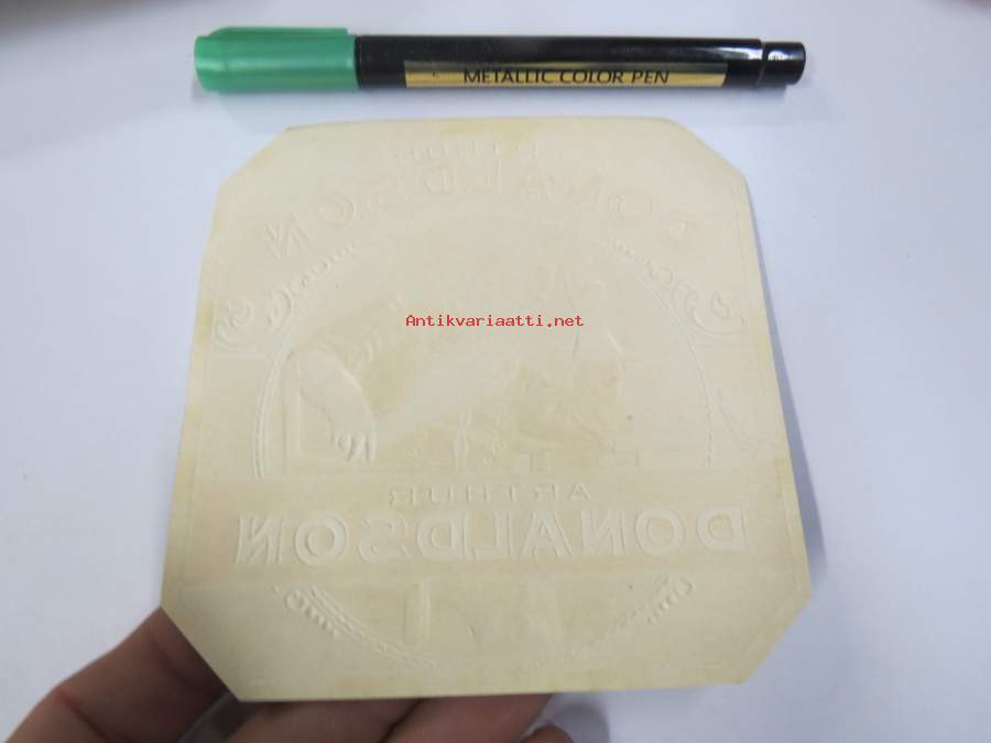 Arthur Donaldson -sikarietiketti, huomaa kohopainatus