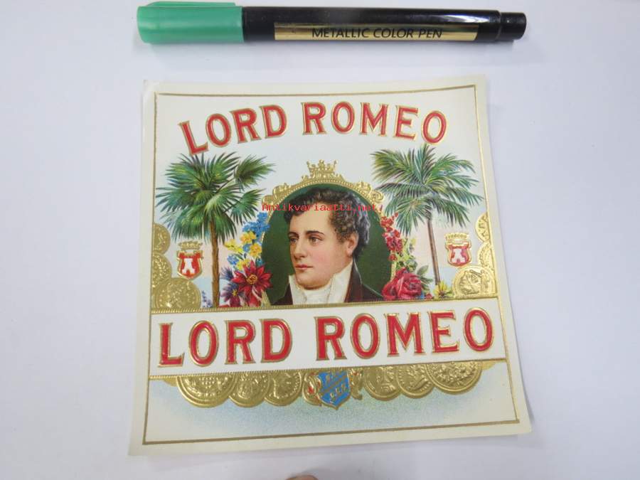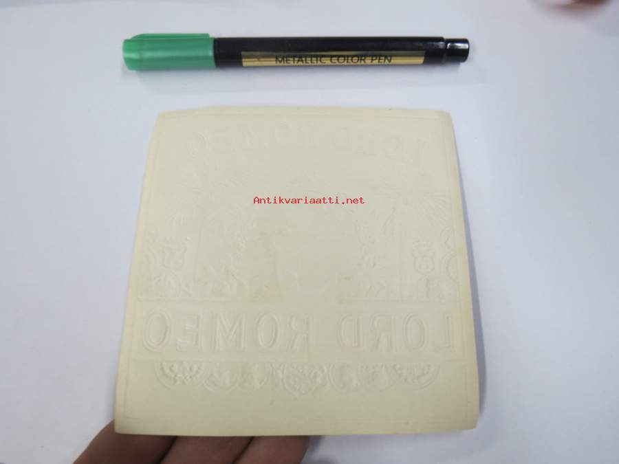 Lord Romeo -sikarietiketti, huomaa kohopainatus